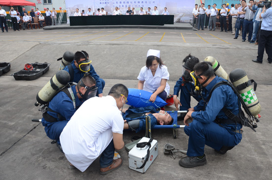 本網(wǎng)訊 5月29日上午,濟(jì)寧市第二次安委會(huì)成員單位會(huì)議暨危化品泄漏應(yīng)急救援演練在山東榮信煤化有限責(zé)任公司舉行。國家安監(jiān)總局呂海燕司長出席會(huì)議并對演練進(jìn)行點(diǎn)評,濟(jì)寧市委常委、副市長周洪出席會(huì)議并作重要講話,濟(jì)寧市公安局局長周鳳文,安監(jiān)局局長陳魯起,鄒城市委副書記、市長謝成海,副市長劉剛等觀摩演練并參加會(huì)議,公司總經(jīng)理司相芳陪同觀摩演練。濟(jì)寧市安委會(huì)成員單位負(fù)責(zé)同志,各縣市(區(qū))分管縣市(區(qū))長、安監(jiān)局長,40余家重點(diǎn)?;菲髽I(yè)負(fù)責(zé)同志觀摩演練并參加會(huì)議。 與會(huì)人員首先觀摩了榮信煤化危險(xiǎn)化學(xué)品泄漏應(yīng)急演練活動(dòng)。上午9:00,周洪副市長宣布:“濟(jì)寧市安全生產(chǎn)月活動(dòng)啟動(dòng)儀式暨危化品泄漏應(yīng)急救援演練開始!”本次演練以機(jī)焦分廠上升管1號放散管根部因銹蝕突然破裂造成大量煤氣泄漏,一名員工因吸入大量煤氣導(dǎo)致中毒為模擬場景實(shí)施救援。煤氣泄漏后,在撤離過程中一名員工因吸入大量煤氣導(dǎo)致中毒暈倒,另一名員工撤離到安全區(qū)域后立即通知值長請求救援。值長立即向分廠領(lǐng)導(dǎo)匯報(bào)并撥打120,分廠領(lǐng)導(dǎo)接到事故報(bào)告后立即下達(dá)“停止生產(chǎn)、設(shè)備斷電、維修人員排查泄漏原因”的口令,給調(diào)度室匯報(bào)請求公司救援并立即趕往現(xiàn)場。公司應(yīng)急救援小組人員穿戴防護(hù)用具后迅速進(jìn)入現(xiàn)場救出中毒員工,將爐頂員工疏散至安全區(qū)域。公司調(diào)度室立即撥打119請求支援,公司領(lǐng)導(dǎo)及各部門負(fù)責(zé)人第一時(shí)間到達(dá)事故現(xiàn)場成立救援指揮部。指揮部分別向市安監(jiān)局、質(zhì)監(jiān)局、環(huán)保局、衛(wèi)計(jì)局、公安消防大隊(duì)報(bào)告事故情況,請求地方救援。經(jīng)過維修人員緊張的排查、搶修,將管道泄漏部位修復(fù),險(xiǎn)情得以控制。 救護(hù)車、消防車趕到現(xiàn)場后,醫(yī)護(hù)人員查看中毒者傷情,隨即用救護(hù)車將其送往醫(yī)院,消防車開至現(xiàn)場向設(shè)備泄漏位置用水槍稀釋,防止發(fā)生火災(zāi)。環(huán)保局、安監(jiān)局帶領(lǐng)相關(guān)人員到達(dá)事故現(xiàn)場,安監(jiān)局負(fù)責(zé)指揮協(xié)調(diào),環(huán)保局對周圍環(huán)境進(jìn)行了監(jiān)測,經(jīng)環(huán)境檢測沒有對周圍環(huán)境造成污染。本次演練結(jié)束。 演練結(jié)束后,在公司禮堂召開濟(jì)寧市第二次安委會(huì)成員單位會(huì)議,各縣(市、區(qū))就落實(shí)企業(yè)主體責(zé)任工作進(jìn)展情況和赴北京順義區(qū)考察學(xué)習(xí)后有關(guān)工作落實(shí)情況,作了工作匯報(bào)。周洪副市長指出,今年以來,各級各部門緊緊圍繞安全生產(chǎn)這條主線,不斷提升思想認(rèn)識,扎實(shí)推進(jìn)網(wǎng)格實(shí)名制、落實(shí)企業(yè)主體責(zé)任、完善政府購買服務(wù)等工作,有效遏制了安全事故的發(fā)生,安全生產(chǎn)工作取得了顯著成效。6月份是全國第14個(gè)“安全生產(chǎn)月”,對于廣泛宣傳安全生產(chǎn)大政方針,普及國家安全生產(chǎn)法律法規(guī),鞏固和擴(kuò)大安全生產(chǎn)專項(xiàng)整治成果具有重大意義。各級各部門要認(rèn)真開展形式多樣的宣傳教育活動(dòng),確保規(guī)定活動(dòng)扎扎實(shí)實(shí),自選活動(dòng)有聲有色。