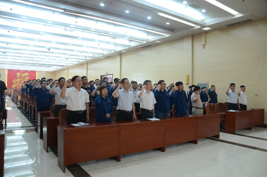 本網(wǎng)訊 飲水思源沐黨恩,同心共筑榮信夢(mèng)。7月1日,公司舉行慶祝建黨94周年重溫入黨誓詞 踐行“三嚴(yán)三實(shí)”活動(dòng),慶祝黨的94歲生日。董事長王謹(jǐn)參加活動(dòng)并作重要講話,活動(dòng)由公司副總經(jīng)理高小明主持,副總經(jīng)理李繼新、吳海浪及公司全體黨員、預(yù)備黨員、入黨積極分子共100多人參加。