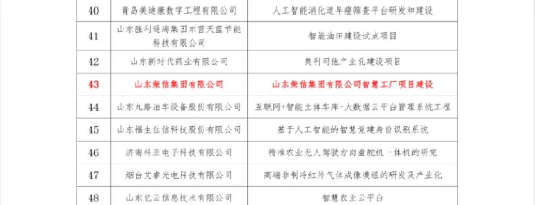 山東榮信集團入選省第二批“現(xiàn)代優(yōu)勢產(chǎn)業(yè)集群+人工智能”試點示范企業(yè)及項目名單