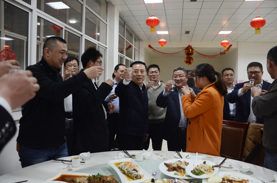 隨后王謹董事長致祝酒詞,王董事長首先代表公司董事會,向一直以來信任和支持榮信煤化的各級領導和朋友們,向與公司一道奮勇攀登的同事及家屬,致以新春的祝福和崇高的敬意。王董事長指出,2015年,是榮信煤化奮力攀登的一年,是挑戰(zhàn)極限的一年。在這不尋常的一年中,我們奮力拼搏,披荊斬棘。我們在砥礪前行中做到了同行業(yè)最好水平,黨委政府、股東單位、社會各界為我們點贊!當2015年漸行漸遠,回望一年來走過的路、越過的坎,才驀然發(fā)現(xiàn),身后的崎嶇,在不知不覺中已抬升了我們的高度。