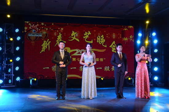 在大家熱烈的掌聲中,司相芳總經(jīng)理作新年致辭。司總首先代表公司向大家并通過大家,向支持榮信煤化事業(yè)發(fā)展的黨委政府、股東單位、社會(huì)各界、合作伙伴、全體員工及家屬,表示衷心感謝并致以節(jié)日的祝賀!向本臺(tái)晚會(huì)演職人員表示衷心的感謝!并對朱艷梅教授的無私奉獻(xiàn)和濟(jì)寧電視臺(tái)領(lǐng)導(dǎo)的鼎力支持表示感謝!。