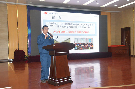會議在精彩紛呈的節(jié)目演出中拉開序幕?!毒媸瓌t》朗誦、小品《新聞播報》、啞劇《精益管理就是好》、歌曲《你行我也行》、情景劇《6S推行記》通過不同的表現(xiàn)形式淋漓盡致地展現(xiàn)了公司推行近5個月的6S精益管理工作,精彩的表演贏得了與會領(lǐng)導(dǎo)和參會人員的陣陣掌聲。隨后,3A公司副總經(jīng)理唐勇系統(tǒng)總結(jié)了6S精益管理階段工作,3A公司總裁肖智軍生動詮釋了推行精益管理的內(nèi)涵和重要意義,濟(jì)寧市安監(jiān)局局長玄志祥對公司推行的精益管理工作給予了高度評價。