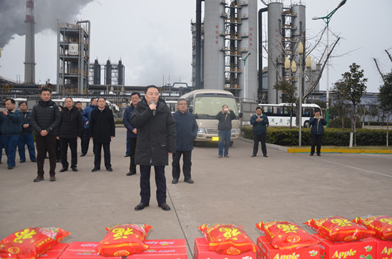 8點50分,司相芳總經(jīng)理帶領(lǐng)集團公司部分領(lǐng)導(dǎo)來到控制中心樓前,下夜班的員工列隊鼓掌歡迎。司總發(fā)表了熱情洋溢的新年講話。司總說到,在新春佳節(jié)之際,全體員工為了確保節(jié)日期間的安全生產(chǎn),仍然奮斗在生產(chǎn)一線,正是大家的辛勤付出才成就了我們榮信集團今天的輝煌,并對大家一年來在工作中作出的貢獻表示衷心的感謝,祝大家在新的一年里工作順利、闔家幸福,萬事如意!