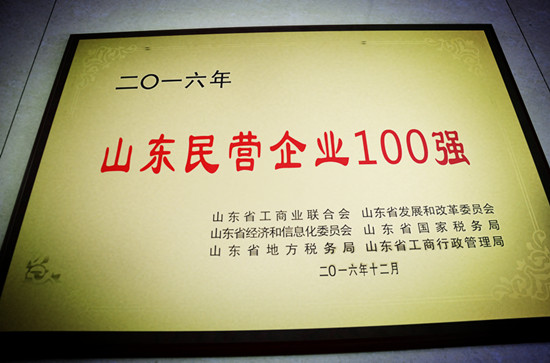 近日,山東工商聯(lián)公布2016年度山東民營企業(yè)百強(qiáng)名單,公司喜獲“2016年度山東民營企業(yè)100強(qiáng)”榮譽(yù),而且排名由2015年度山東民企第99位上升至第78位。