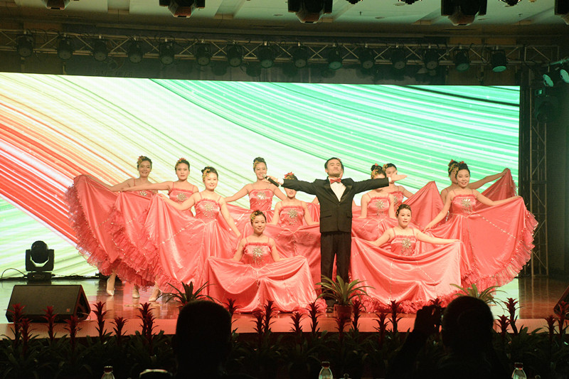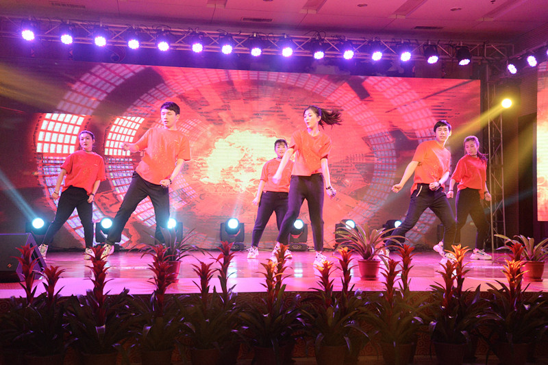 晚會(huì)以“新時(shí)代、新?lián)?dāng)、新發(fā)展”為主題,形式多樣、內(nèi)容豐富、精彩紛呈。晚會(huì)以激情高昂大氣的歌伴舞《陽光路上》拉開了帷幕。隨后歌曲《中國范兒》、《冰糖葫蘆》、《站在草原望北京》、《年輕的朋友來相會(huì)》等表演,熱情謳歌了新時(shí)代新生活新夢想。琵琶重奏《送我一支玫瑰花》、喊麥《夢想起航》、三句半《贊榮信》、熒光舞《舞動(dòng)激情》、群口相聲《誰的功勞大》、小品《榮信情緣》等節(jié)目,給觀眾帶來了耳目一新的視聽享受,贏得現(xiàn)場觀眾的陣陣掌聲。最后,晚會(huì)在激情昂揚(yáng)的歌曲《不忘初心》中圓滿落下帷幕。演出結(jié)束后,總經(jīng)理司相芳、副總經(jīng)理高小明、總工程師杜漢雙、副總經(jīng)理李繼新等集團(tuán)領(lǐng)導(dǎo)上臺(tái)與演職人員親切握手并合影留念,共同祝賀晚會(huì)取得圓滿成功。