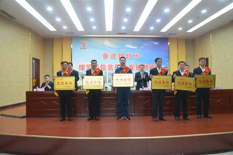 3月12日下午,山東榮信集團在多功能廳隆重召開2017年總結表彰暨推動集團新時代高質量發(fā)展動員大會。會議對去年工作中涌現出來的先進單位和個人進行了表彰,總結了2017年取得的工作成績,分析了存在的問題和不足,并對2018年的各項目標任務進行了系統(tǒng)部署。山東榮信集團領導王謹、司相芳、高小明、吳海浪、杜漢雙、于先長、葉軍、李繼新在主席臺就座。集團中層以上領導干部、基層管理人員及部分員工代表共計500余人參加了會議。