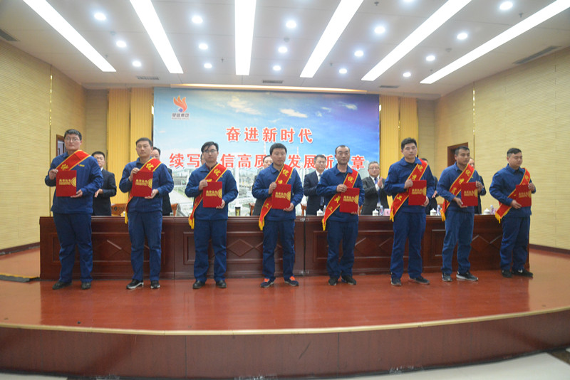 總經理司相芳在會議上發(fā)表了以“奮進新時代 續(xù)寫榮信高質量發(fā)展新篇章”為主題的重要講話。司總指出,2017年,我們收獲頗豐,應該說每個部門、每個單位、每個版塊、每個條線都干的總體很好。安全環(huán)保形勢總體平穩(wěn),生態(tài)效益提升,獲得濟寧市安全文化建設示范企業(yè)榮譽稱號。產品產量總體穩(wěn)中有升,經濟效益仍居同行業(yè)最好水平,創(chuàng)榮信歷史新高。生產組織和運行管理穩(wěn)中向好,各在建項目正緊張有序推進。經營業(yè)績突出,抗風險能力進一步增強,榮信品牌不斷提升。2017年榮獲中國產學研合作創(chuàng)新示范企業(yè)、山東省節(jié)能先進企業(yè)、山東省資源循環(huán)利用示范基地稱號,喜獲中國制造業(yè)企業(yè)500強、中國民營企業(yè)制造業(yè)500強、山東民企100強、山東省石油和化學工業(yè)100強及山東煤化工行業(yè)10強。特別值得點贊的是,經第三方評價機構現場評價、省級工業(yè)和信息化主管部門評估確認以及專家論證、公示等環(huán)節(jié),山東榮信集團符合《中國制造2025》綠色制造體系建設標準,剛剛被國家工業(yè)和信息化部授予“綠色工廠”稱號,成為了全國綠色制造先進典型示范單位。這些成績的取得,是黨委政府、股東單位和社會各界大力支持的結果,是廣大干部員工共同努力、頑強拼搏的結果,也傾注著員工家屬、廣大客戶、合作伙伴的關心支持。