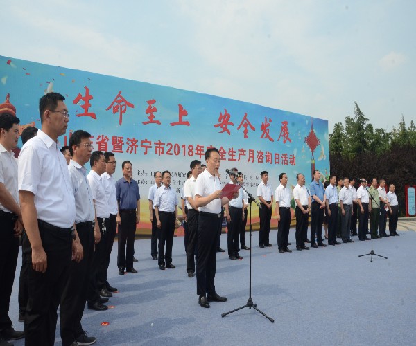 6月20日下午,山東省暨濟(jì)寧市2018年“安全生產(chǎn)月”宣傳咨詢?nèi)栈顒?dòng)在濟(jì)寧高新區(qū)新世紀(jì)廣場舉行。山東省副省長于國安出席并宣布咨詢?nèi)栈顒?dòng)啟動(dòng),濟(jì)寧市委副書記、市長石光亮致辭,副市長周鳳文主持。集團(tuán)總經(jīng)理司相芳出席活動(dòng)并代表全市企業(yè)發(fā)出了安全生產(chǎn)倡議。