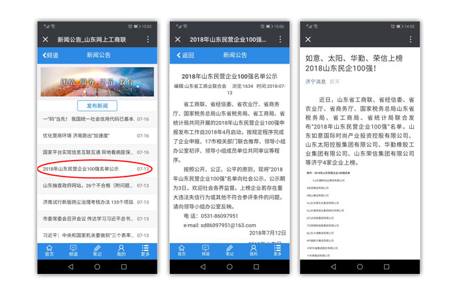 近日,山東省工商聯(lián)、省經(jīng)信委、省農(nóng)業(yè)廳、省商務(wù)廳、國(guó)家稅務(wù)總局山東省稅務(wù)局、省工商局、省統(tǒng)計(jì)局聯(lián)合發(fā)布“2018年山東民營(yíng)企業(yè)100強(qiáng)”名單,山東榮信集團(tuán)有限公司以過(guò)硬的實(shí)力再度上榜。