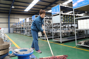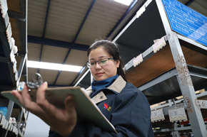 劉溫溫,2011年進(jìn)入公司,現(xiàn)任榮信倉(cāng)庫(kù)班長(zhǎng)。她是這幾個(gè)女人中的排頭兵,一雙大眼睛炯炯有神,雖然一米六的個(gè)頭看上去有點(diǎn)瘦弱,走起路來(lái)卻是一陣風(fēng),顯得穩(wěn)重又干練。工作中她一直把自己定位于帶頭干活的普通職工,上班拼命干活,下了班還惦記著工作,經(jīng)常下了班再加班。對(duì)自己工作中的任何細(xì)節(jié)都要求很高,比如拖地這件小事,她也認(rèn)認(rèn)真真。大家都笑著夸她:“溫溫,你拖的地像鏡子一樣干凈?!痹谒劾铮ぷ骶褪撬氖姑?,只有不斷工作才能給她帶來(lái)成就感和幸福感。